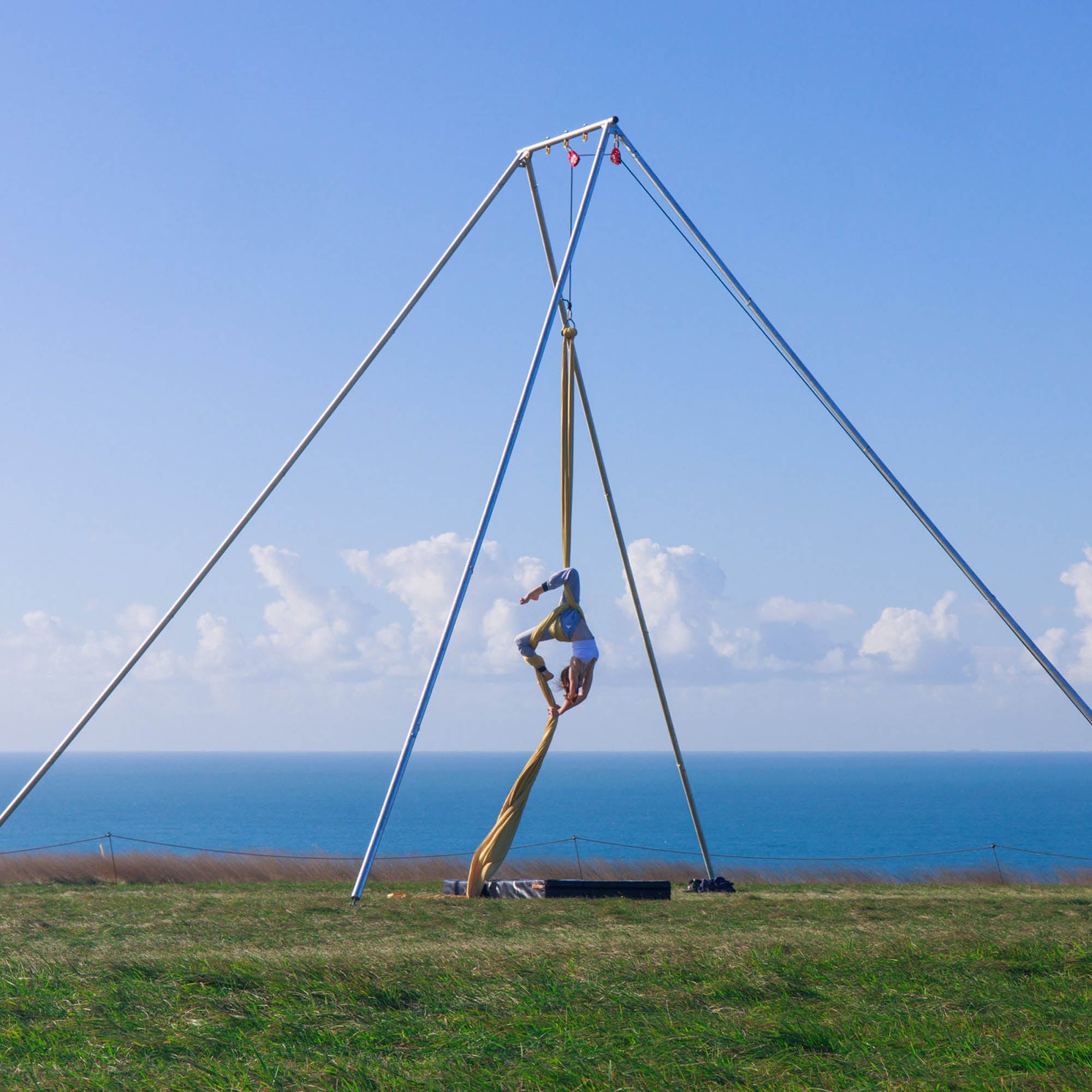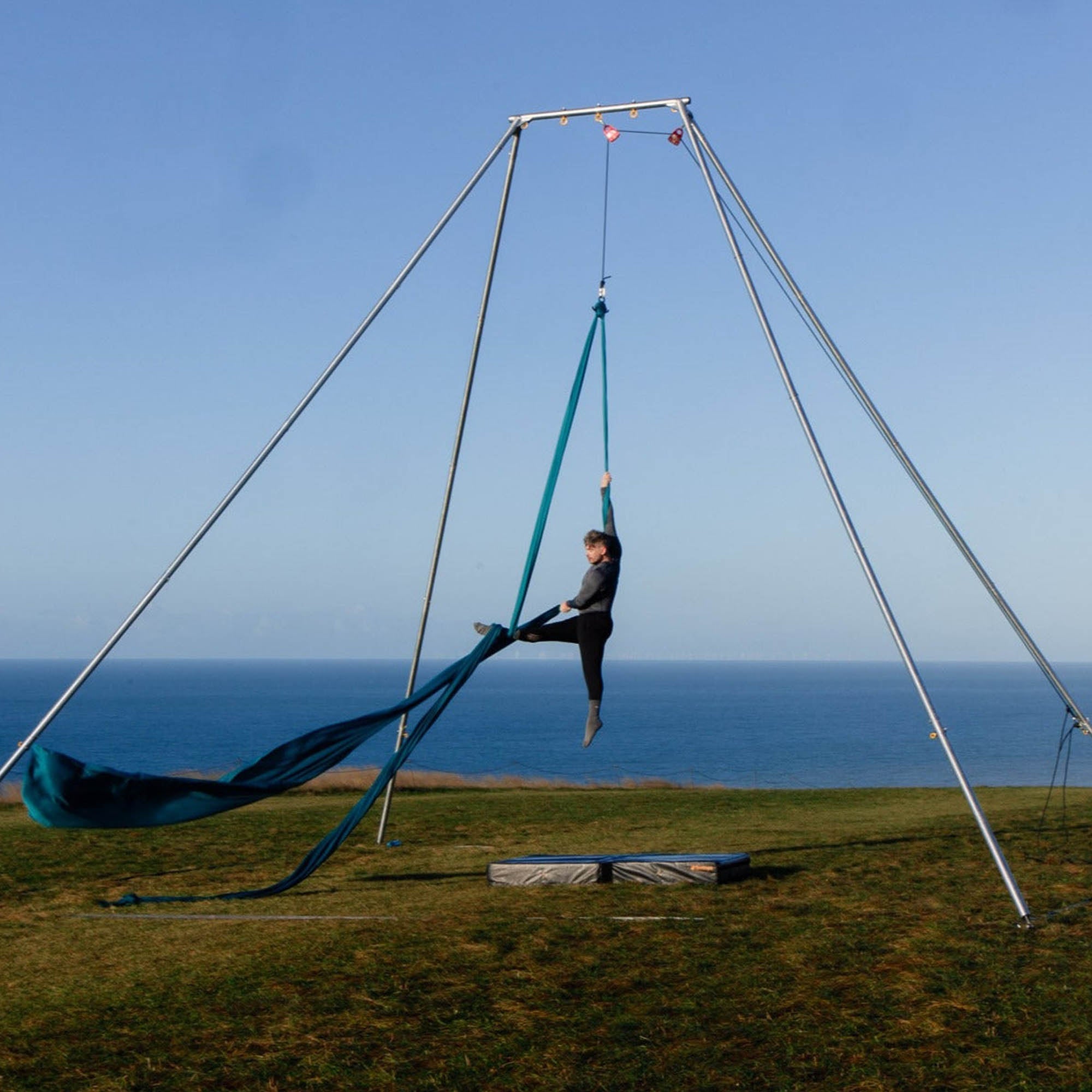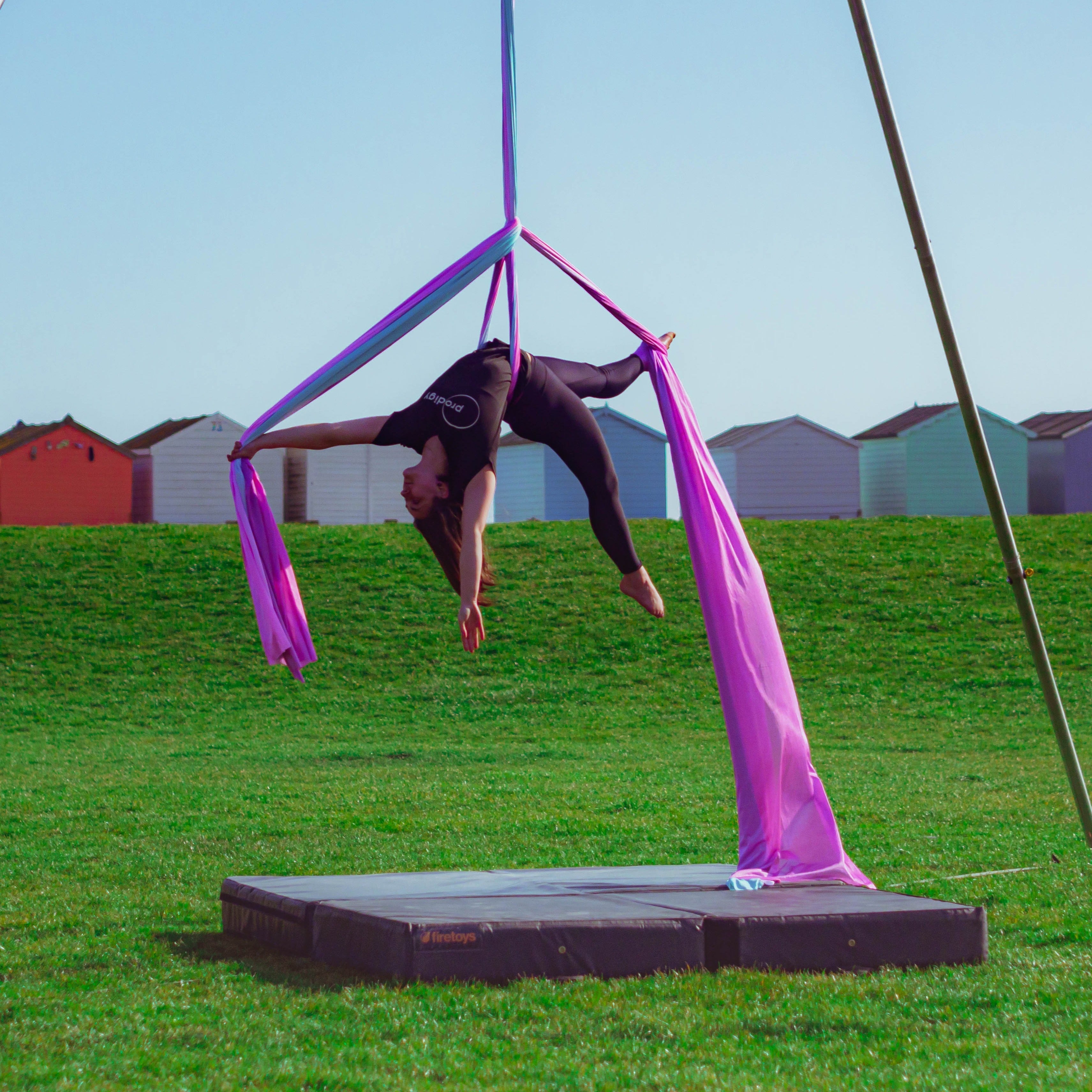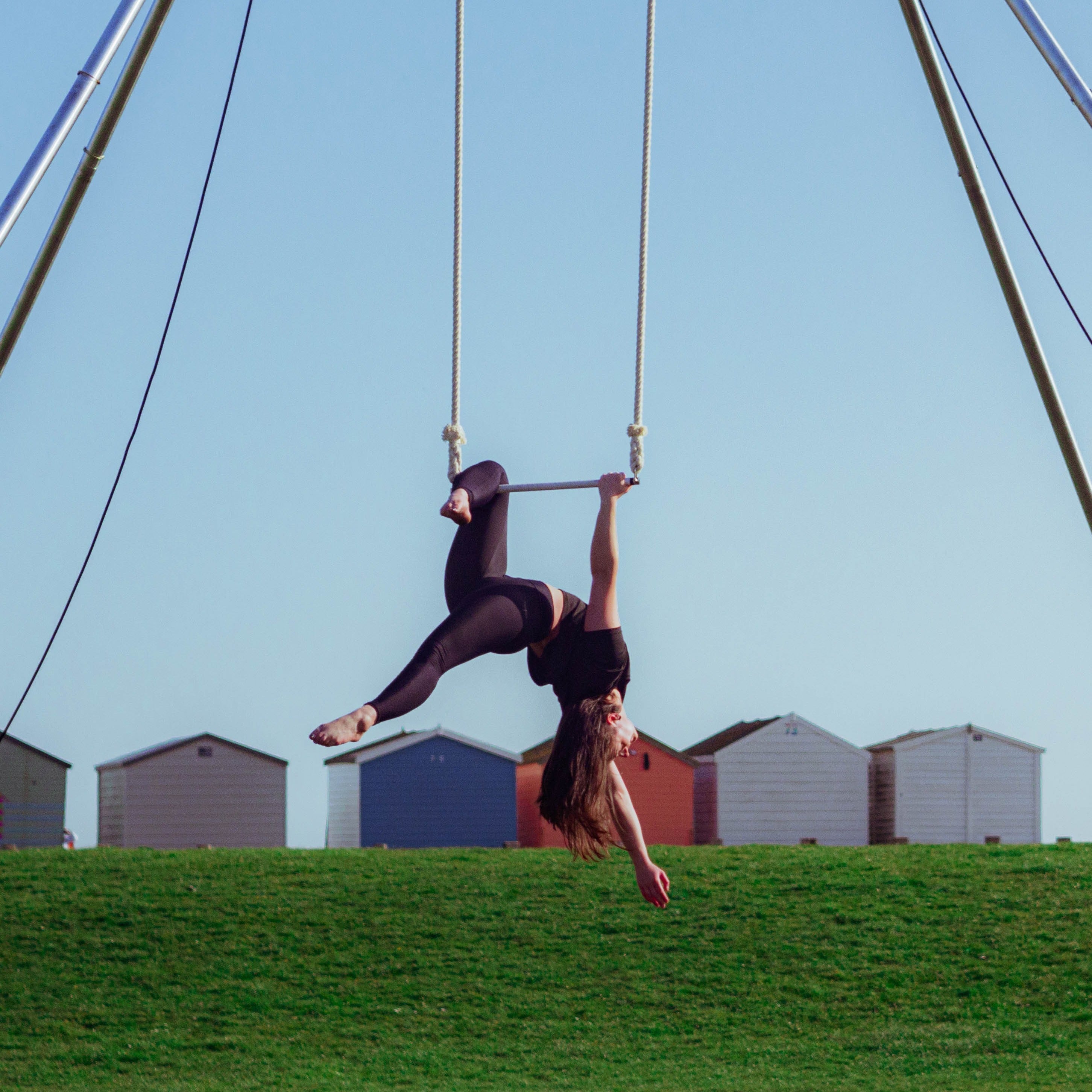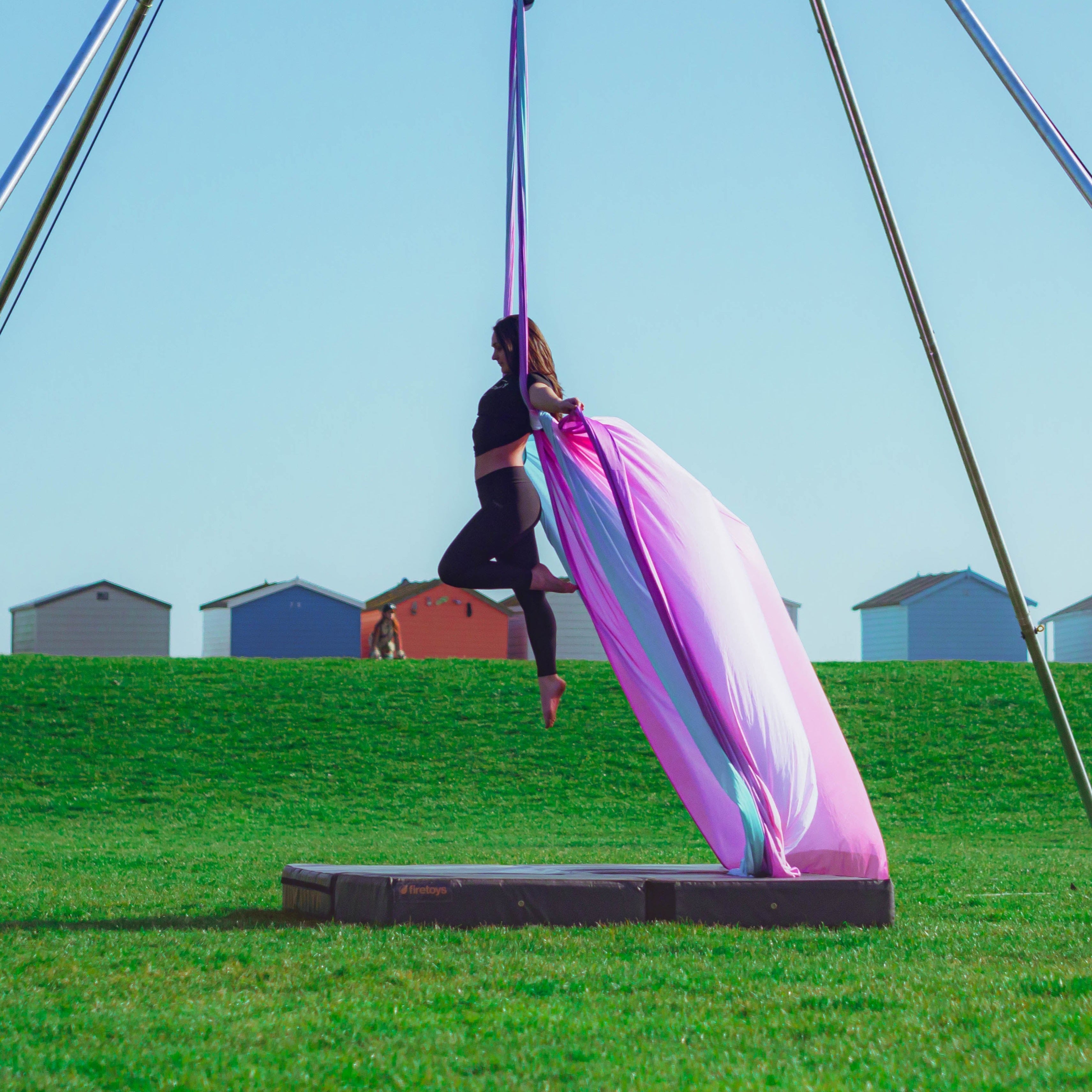 You should also only be considering this if you are an experienced aerialist – learning new moves, particularly with silks, rope or straps, on your own is a very bad idea. And no, YouTube and books are NOT a substitute for a professional instructor. Even if you are confident in your abilities you should never train alone. Just like your normal, indoor training, your spotter should also be experienced and know how to get you out of a move gone wrong and spot that a drop or wrap is wrong before it’s attempted. You should also be wearing suitable clothes and have a crash mat or something similar to help break your fall should you be unfortunate enough to have one.