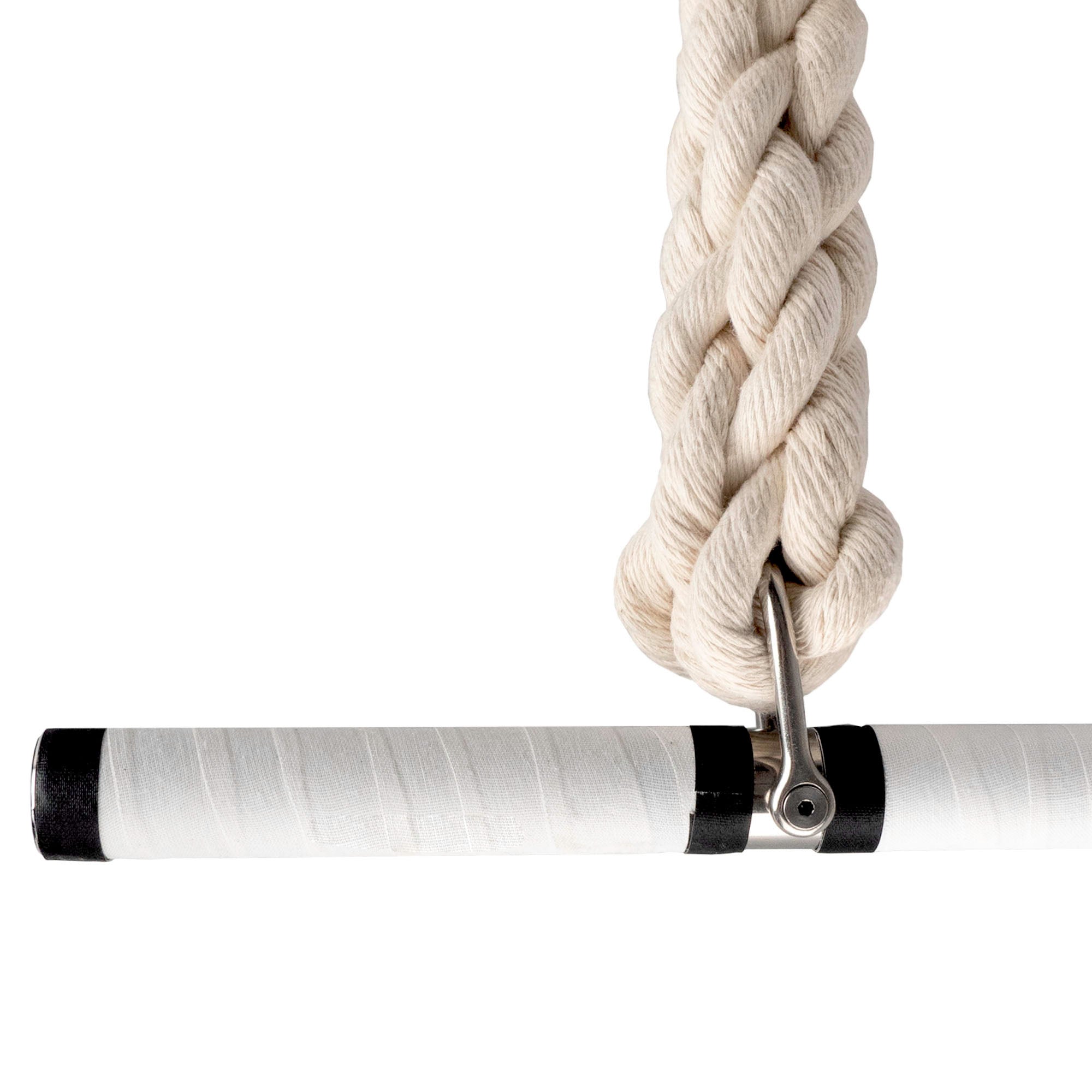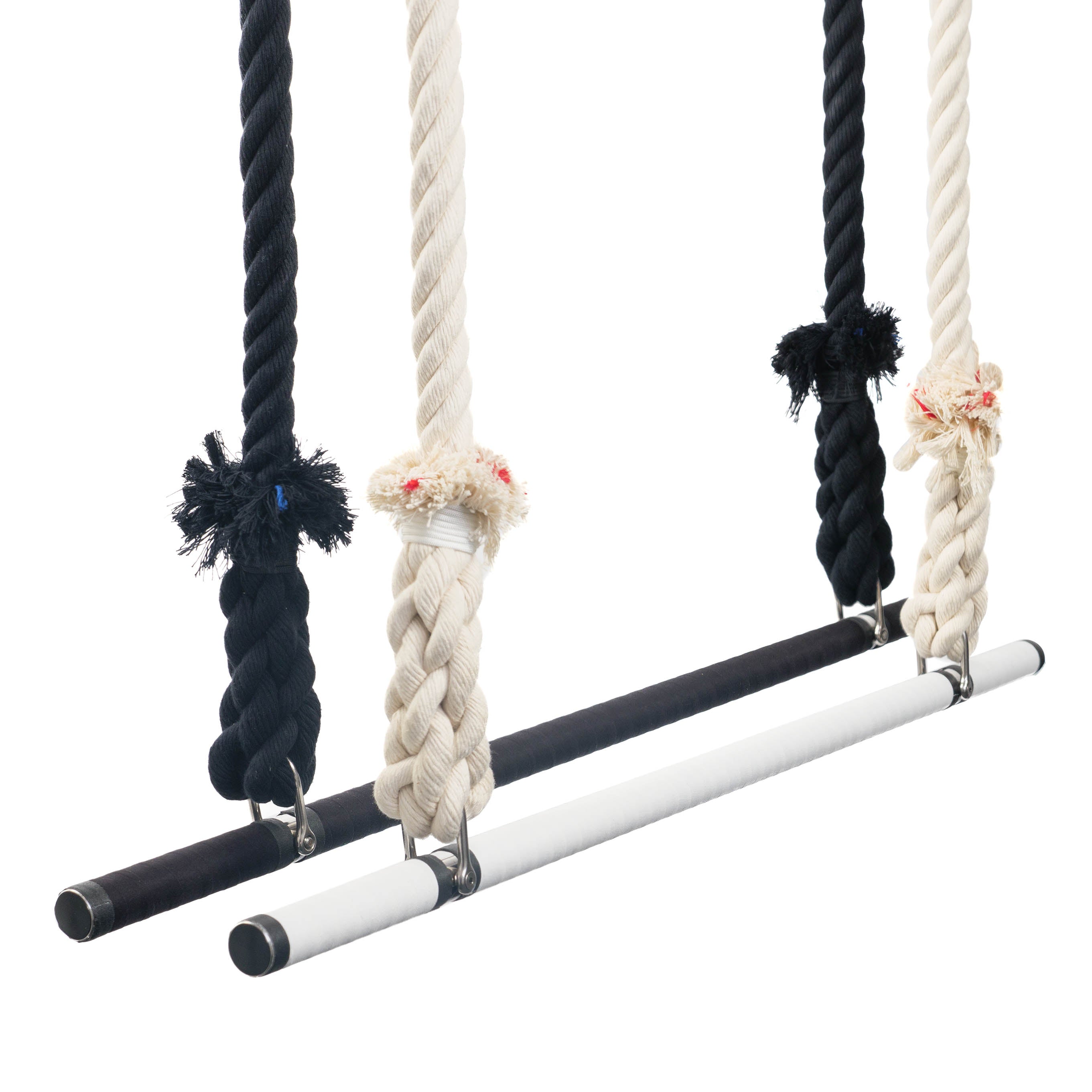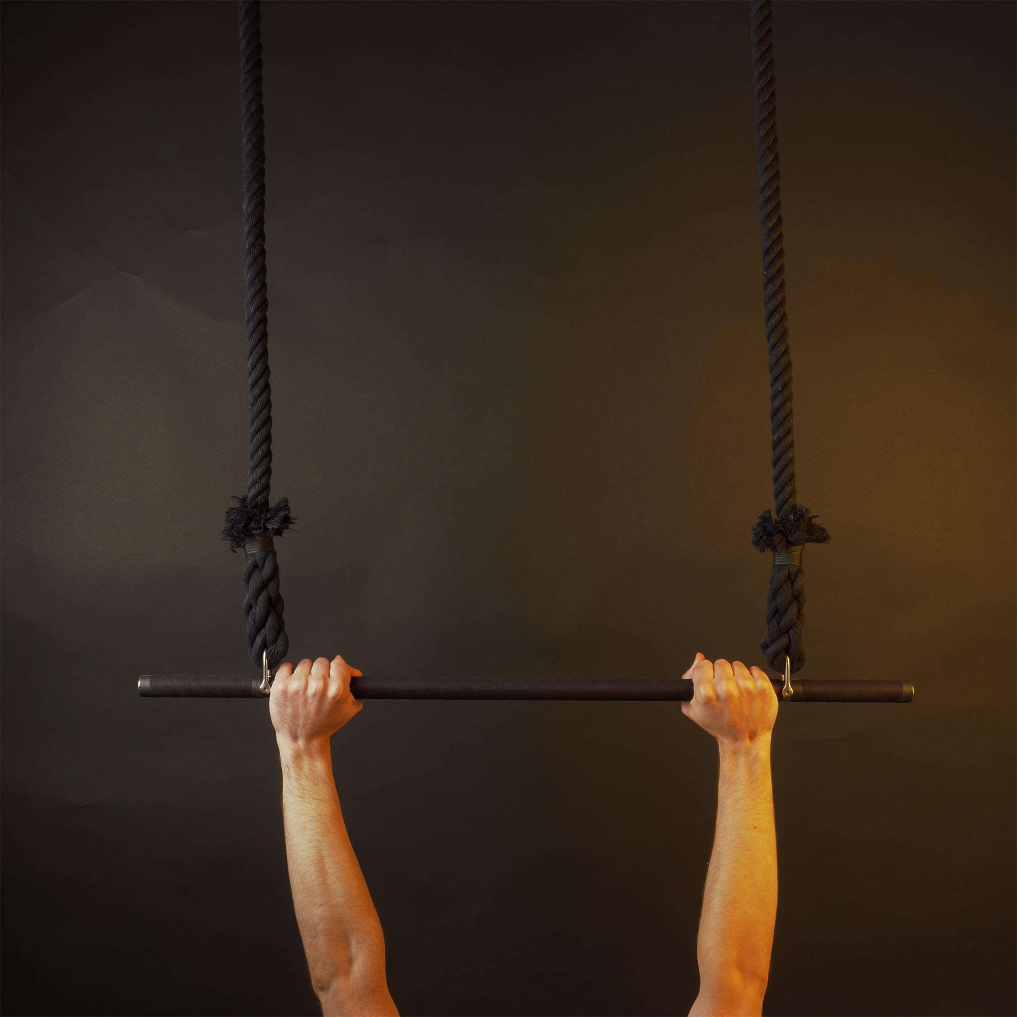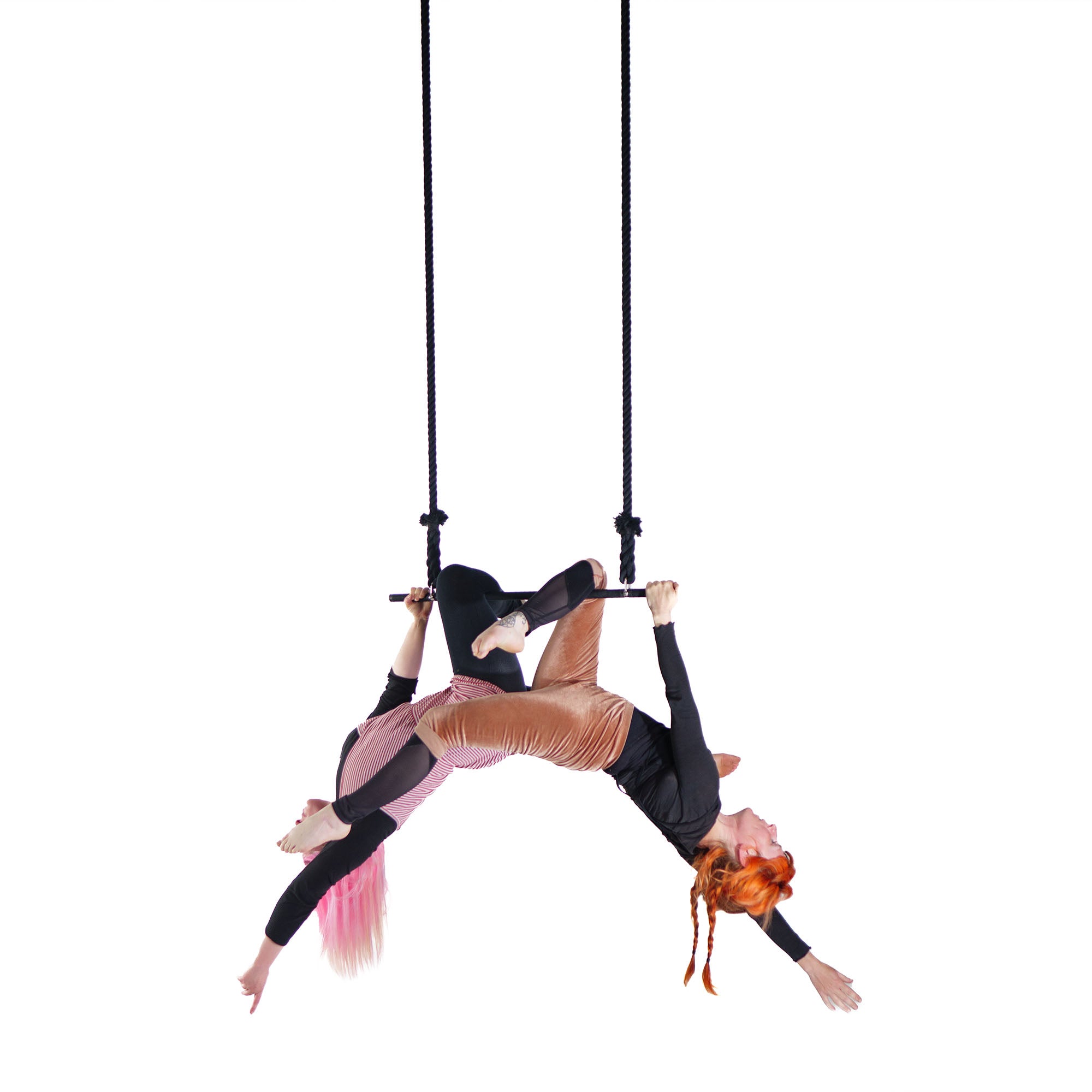 This extended trapeze from Prodigy Aerial combines the versatile shackle style with modern Dyna-Core ropes, which feature minimal stretch and no bounce.