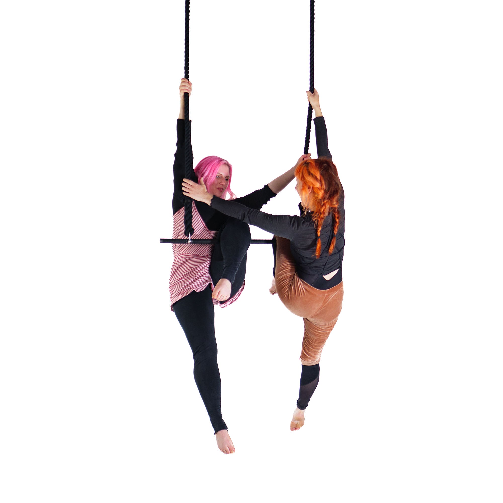 The trapeze's bar is 92cm long from end to end, providing ample space for various aerial poses and tricks. The distance from shackle to shackle is 62cm, making it perfect for doubles work.