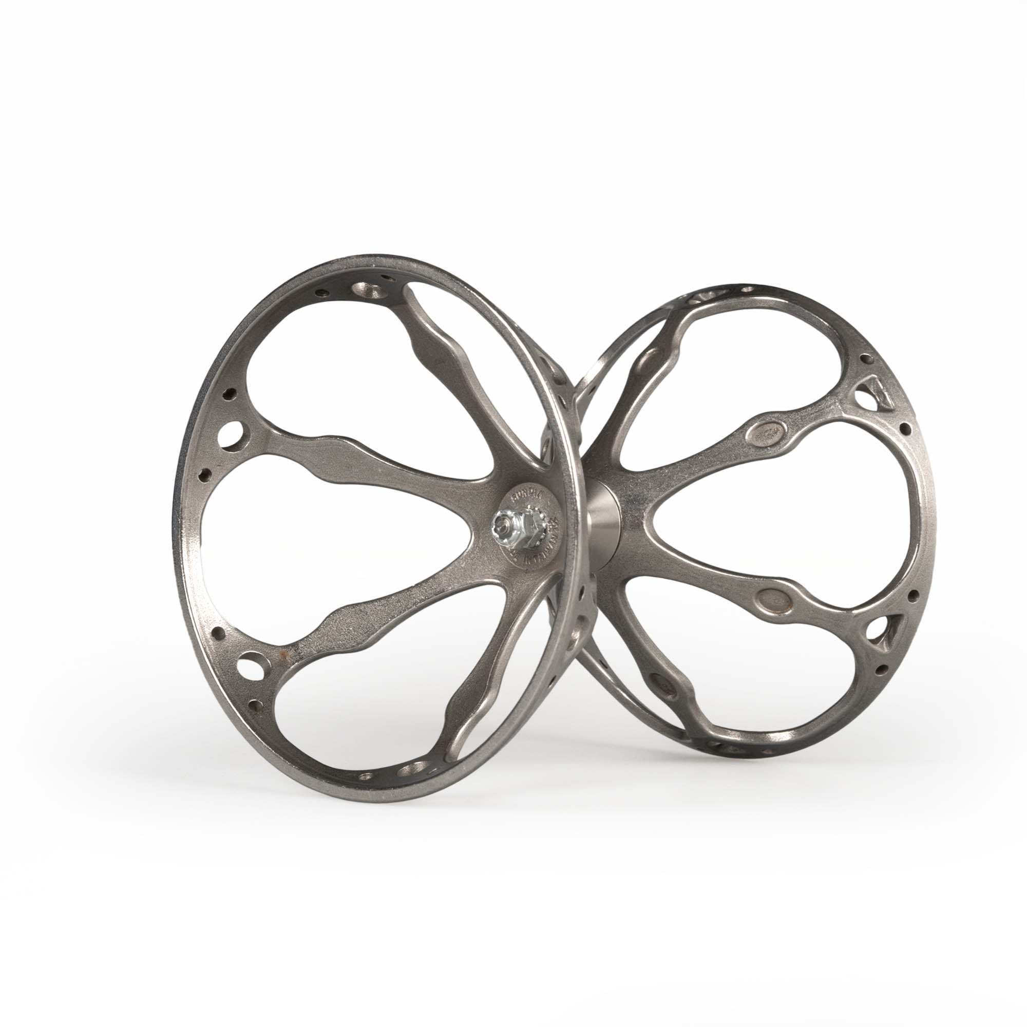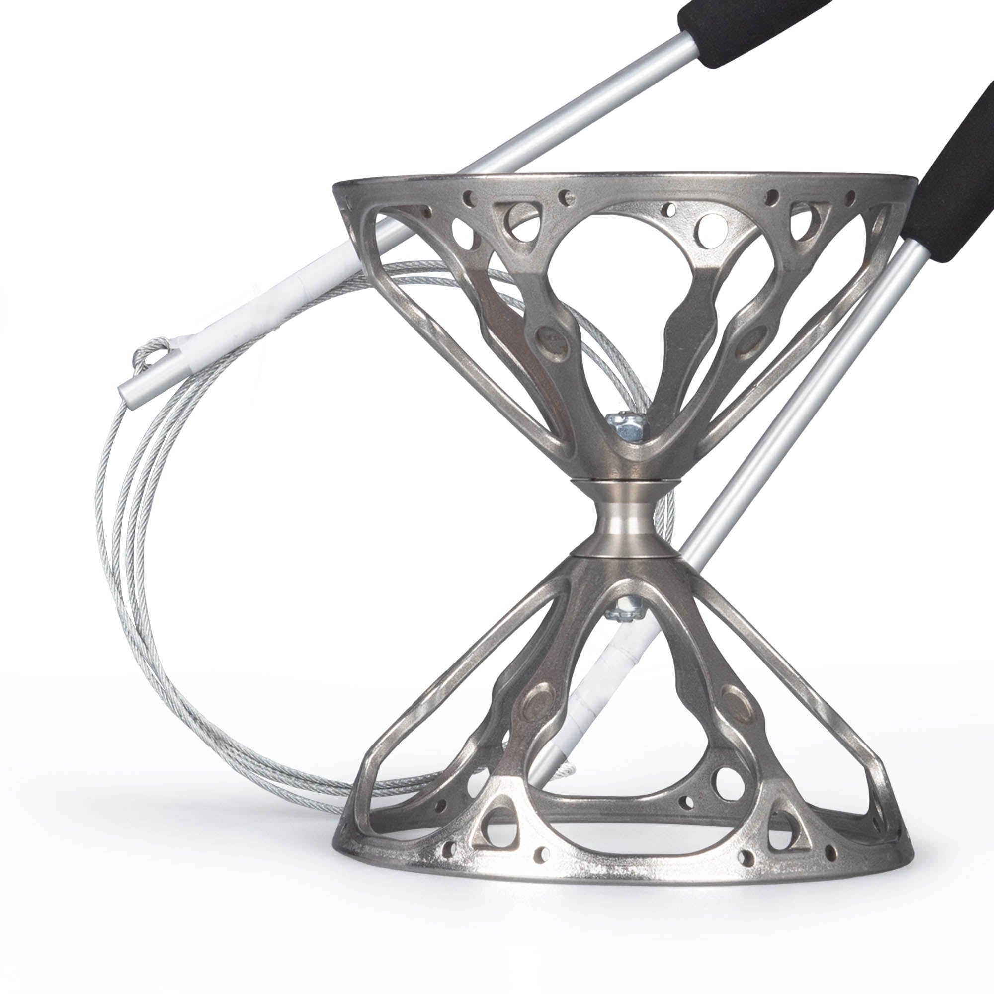 This diabolo comes with a bearing axle meaning it will spin incredibly fast, giving maximum visual impact to your performance as well as opening up trick possibilities. It comes with fixings to add your own fire wicks in the centre of each cup, or you could tie wick or rope to the outer rims with kevlar string (which would act as a shock absorber).