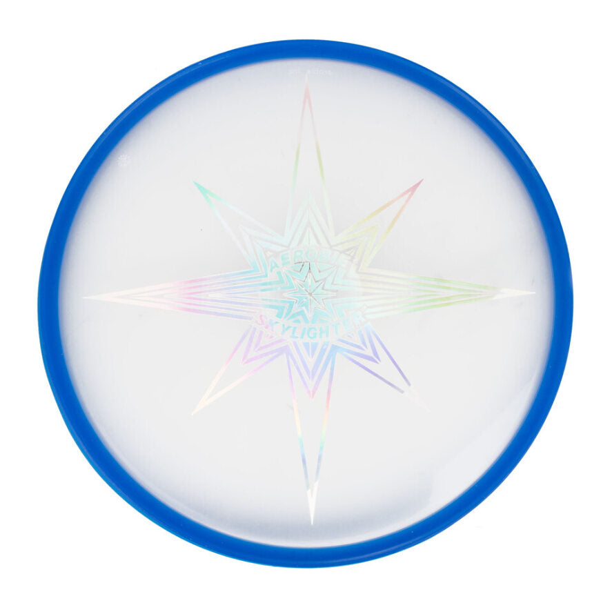 The Aerobie Skylighter is a Superdisc Ultra with two bright white LED's pointing out from the centre. The effect is to light up the whole disc without reducing the long, stable and accurate flights that we've come to expect from Aerobie discs.