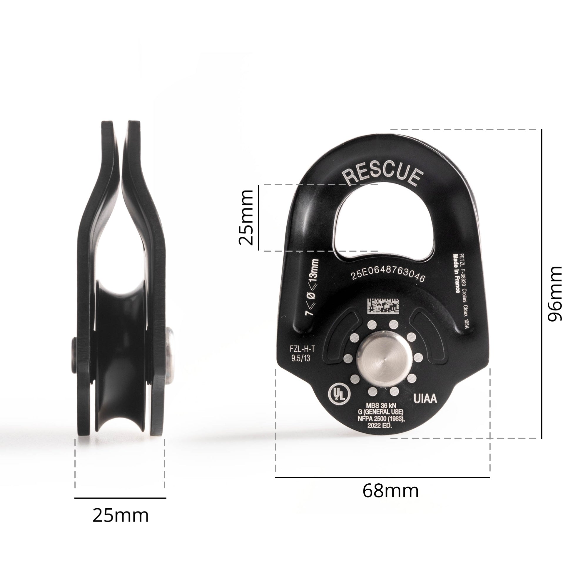 A durable and professional-grade pulley designed for ropes ranging from 7mm to 13mm.