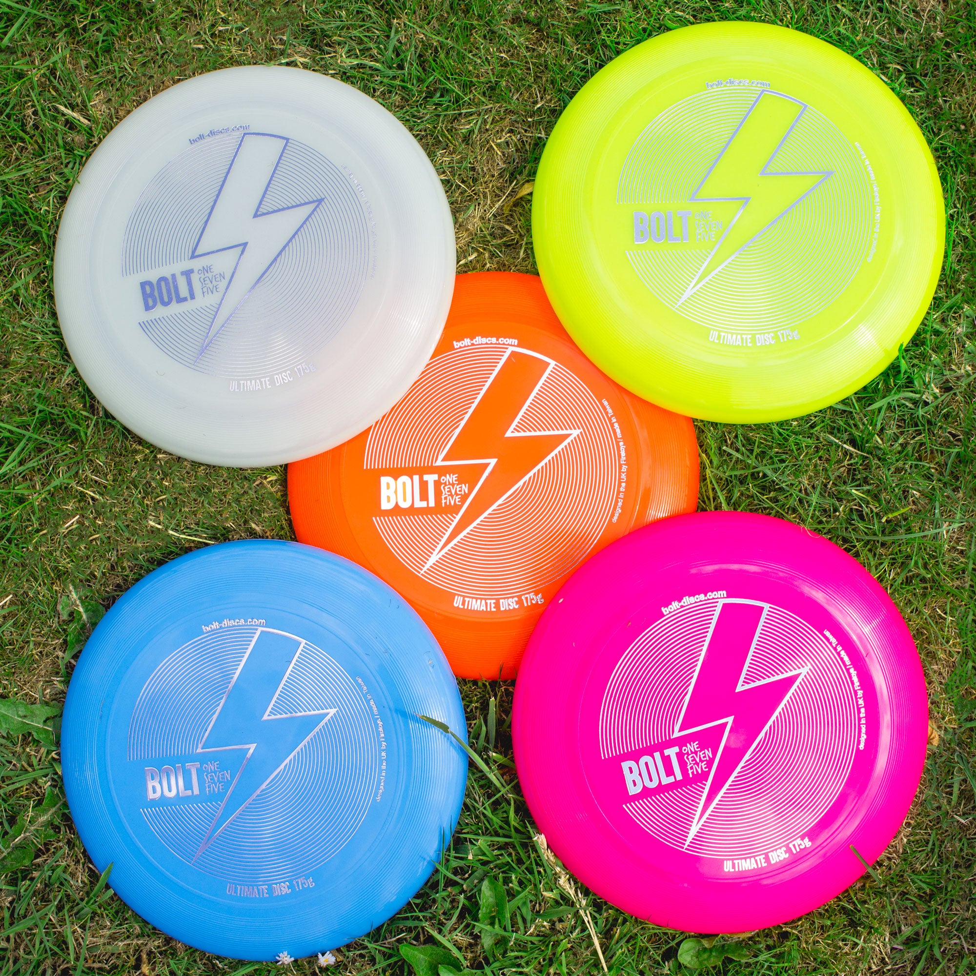 A Classic 175g Flying Disc From Bolt Discs, available in 9 super bright solid and shimmer colours.