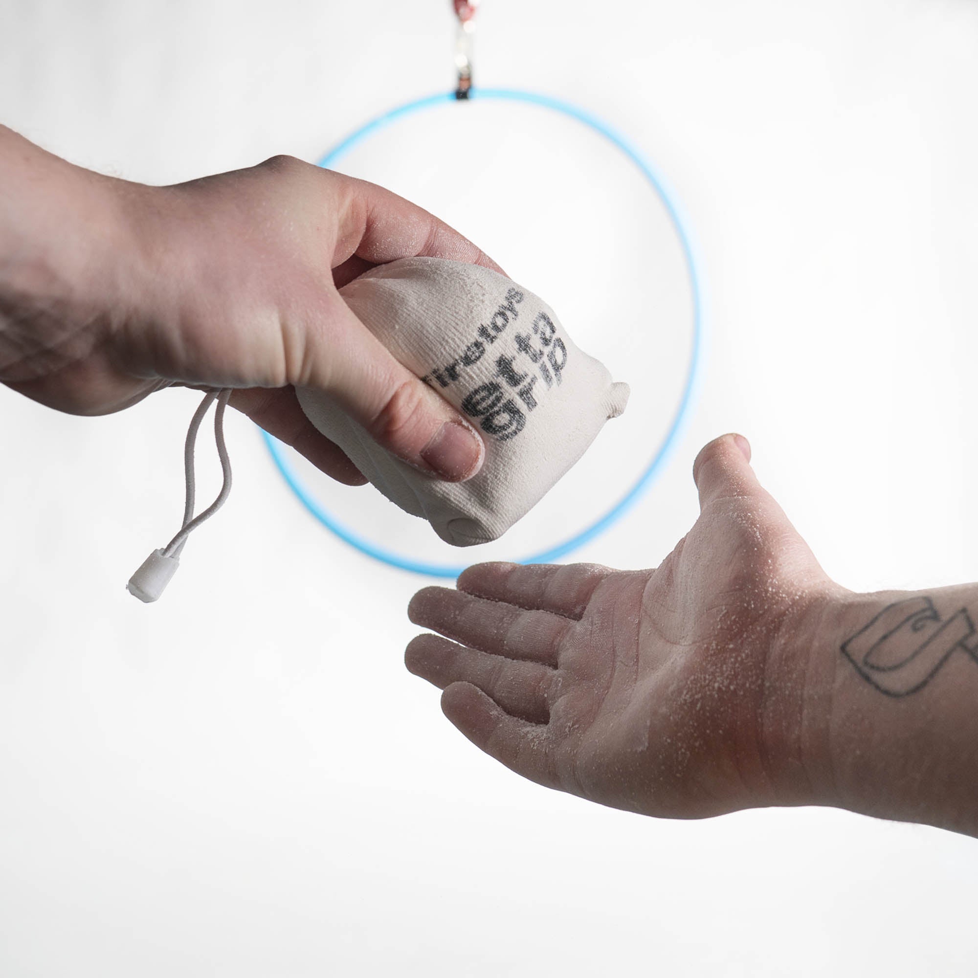 56g of 100% magnesium carbonate chalk in a refillable cotton pouch.