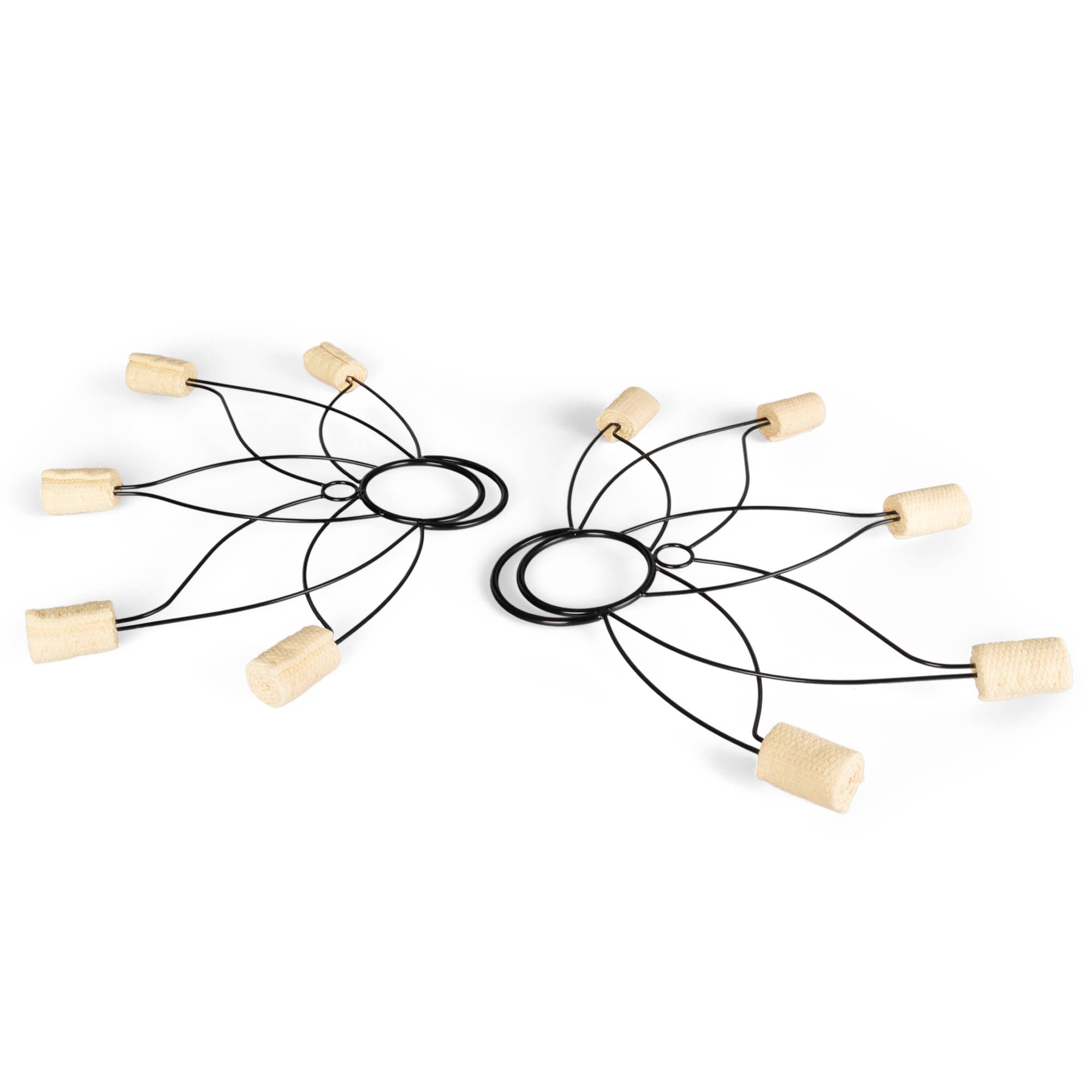 A pair of medium size, lotus fire fans, with sewn wicks.