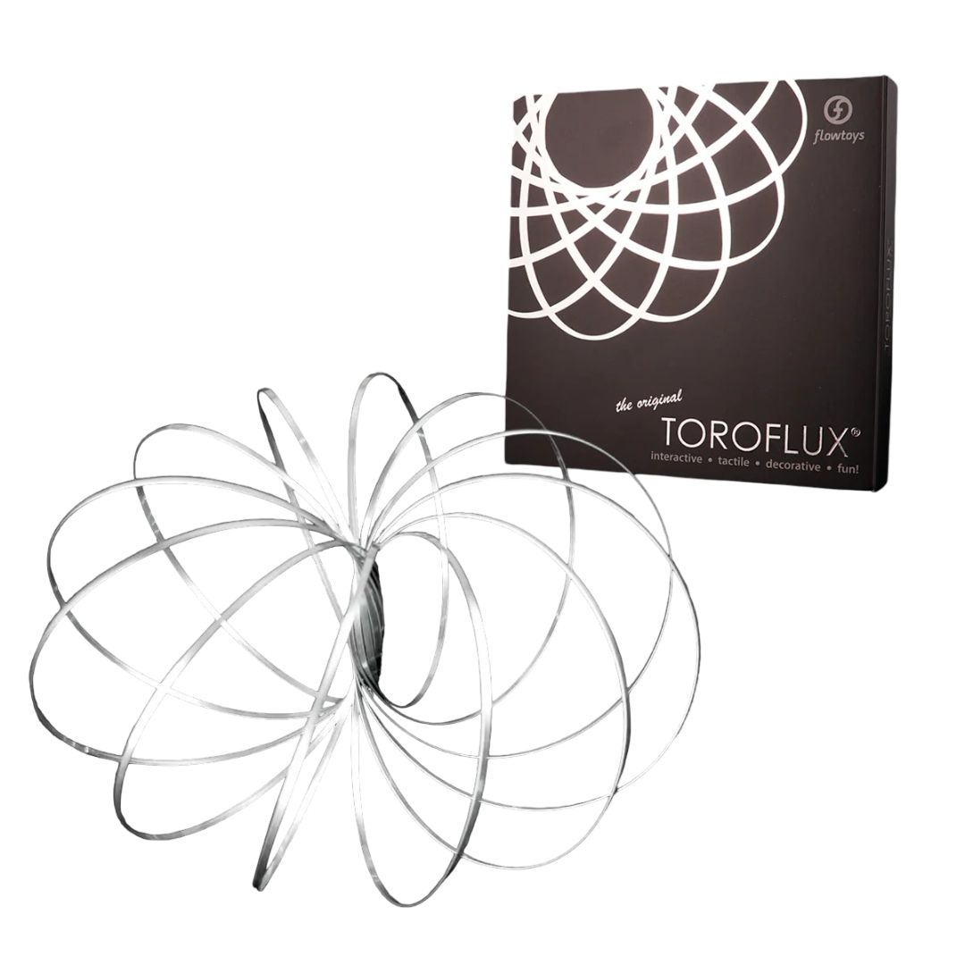 The Flowtoys Toroflux is like a slinky but much cooler! The metal coil expands from flat, turning into a kinetic sculpture. This coil will then fit and flow over your arms (bare arms work best) or other objects and be passed between people just for fun or as part of a dance.
