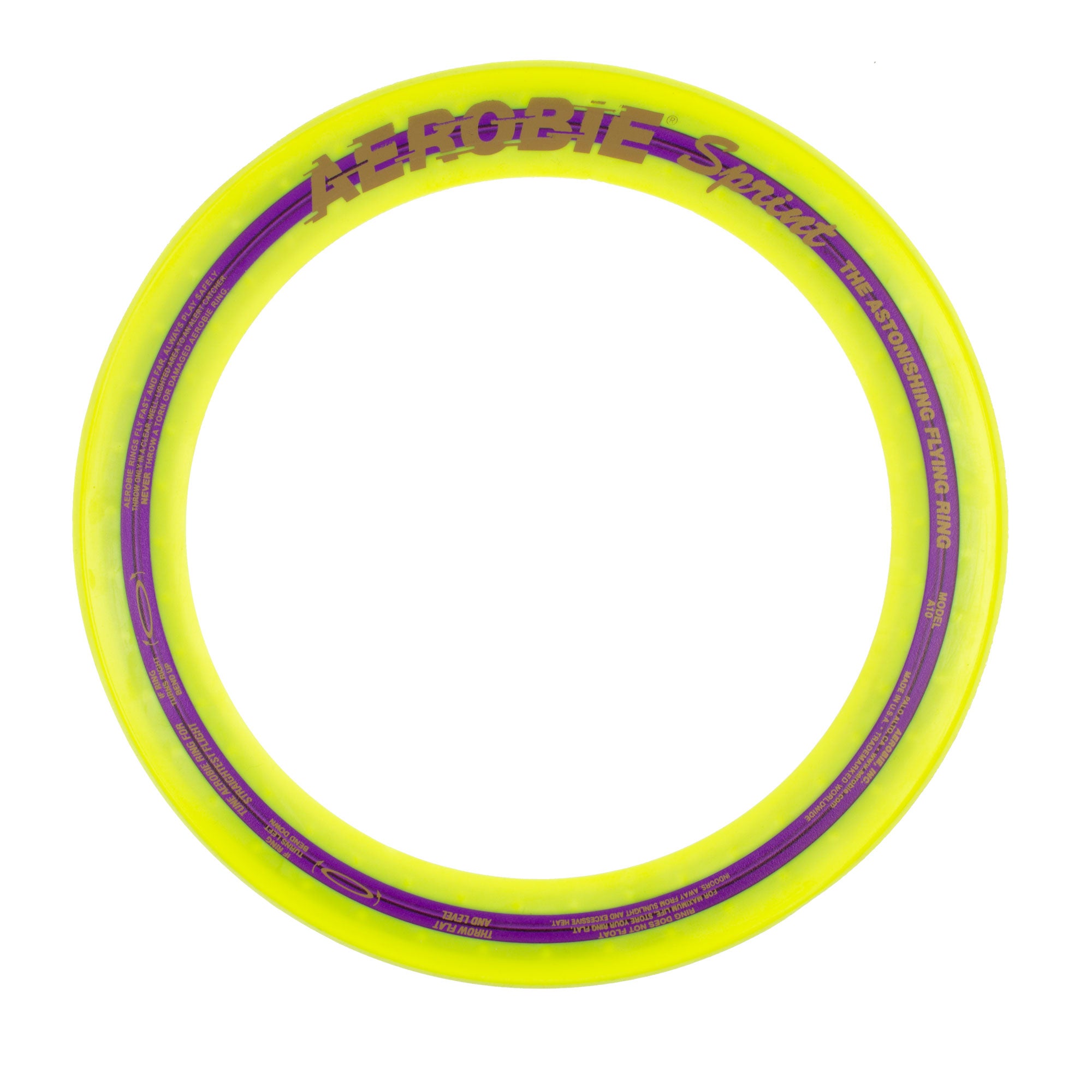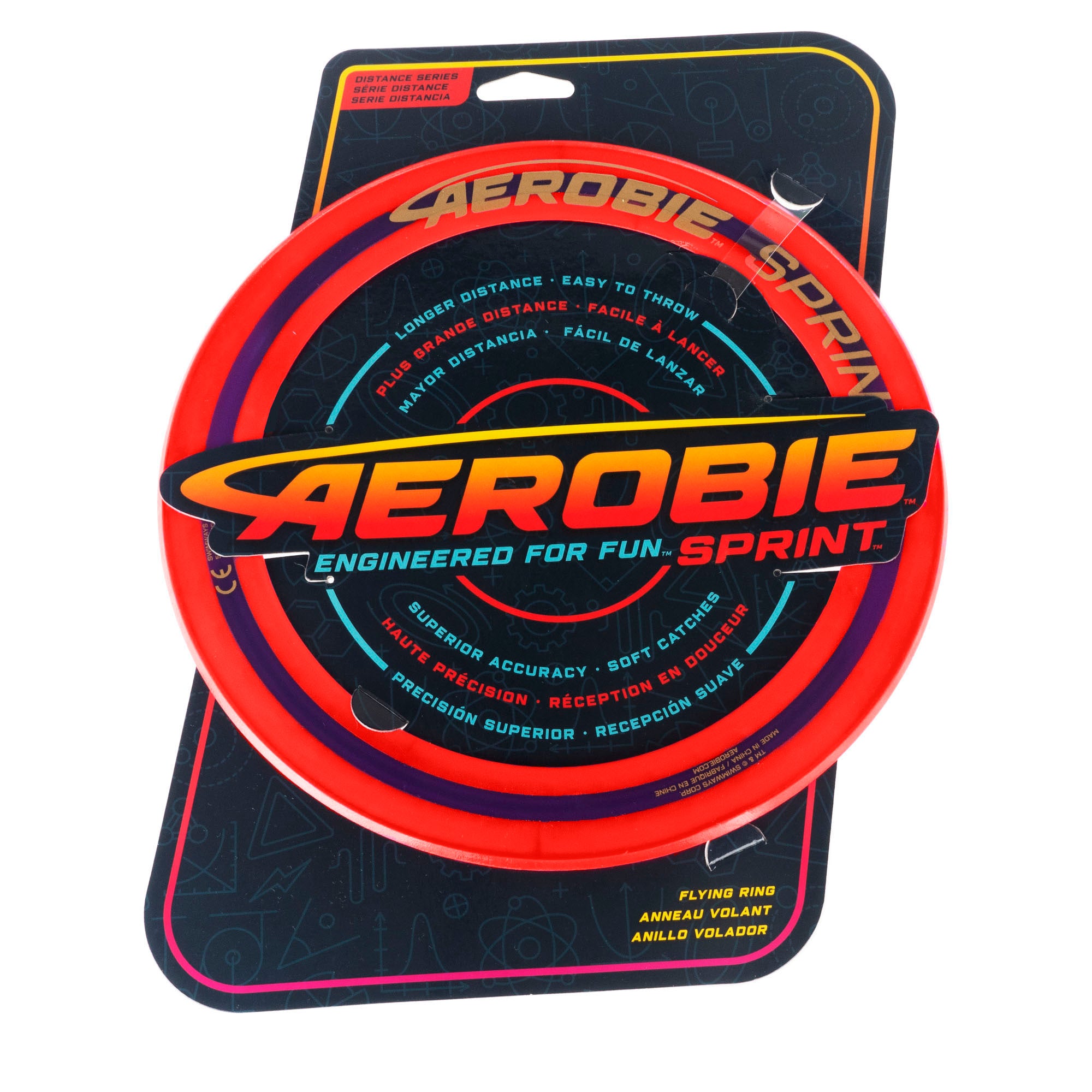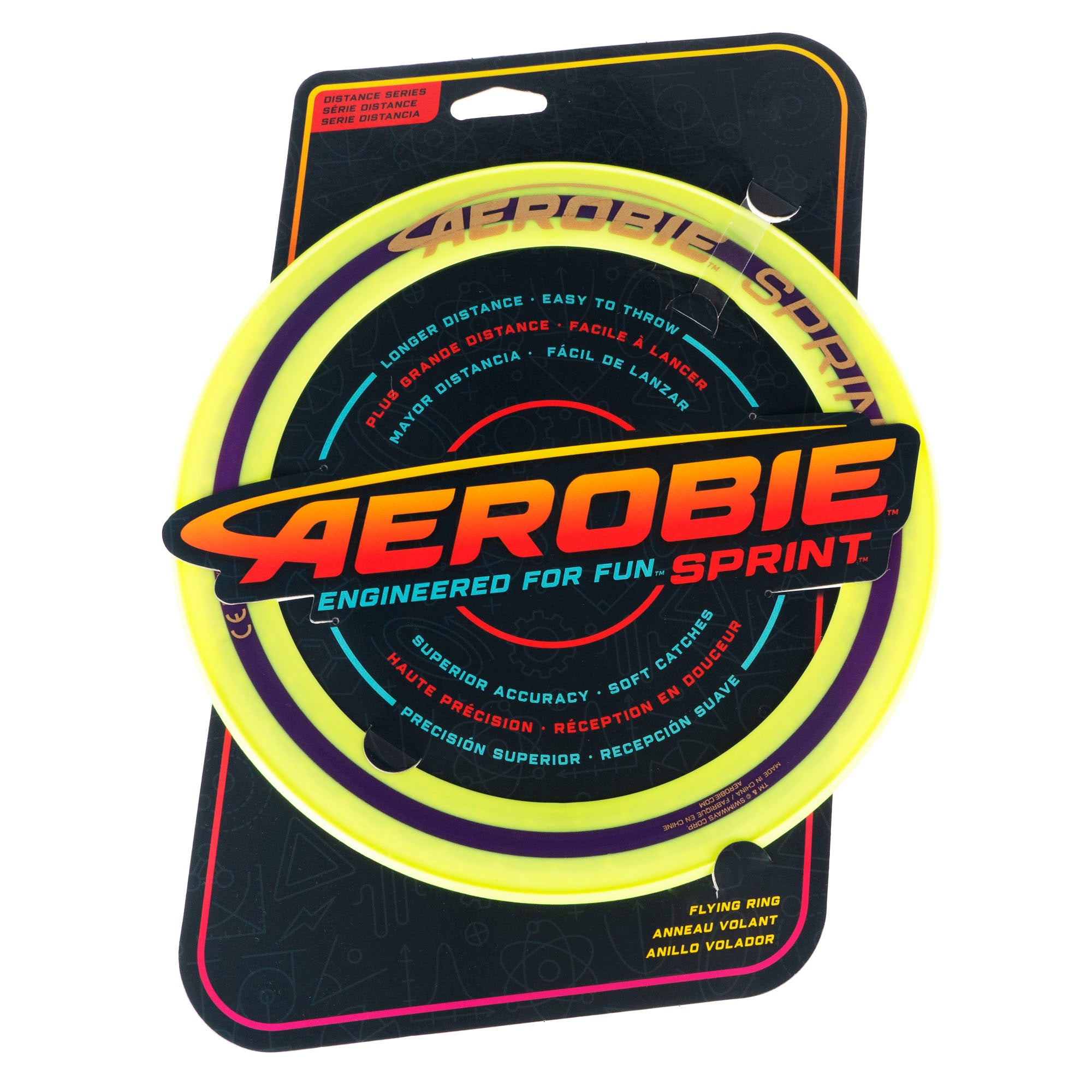 The Aerobie Sprint Ring stands out with its patented spoiler rim, designed to finely balance the disc's lift and ensure remarkably straight and accurate flights. This unique feature allows the disc to travel much farther than most conventional flying discs, making it ideal for long-distance throws.