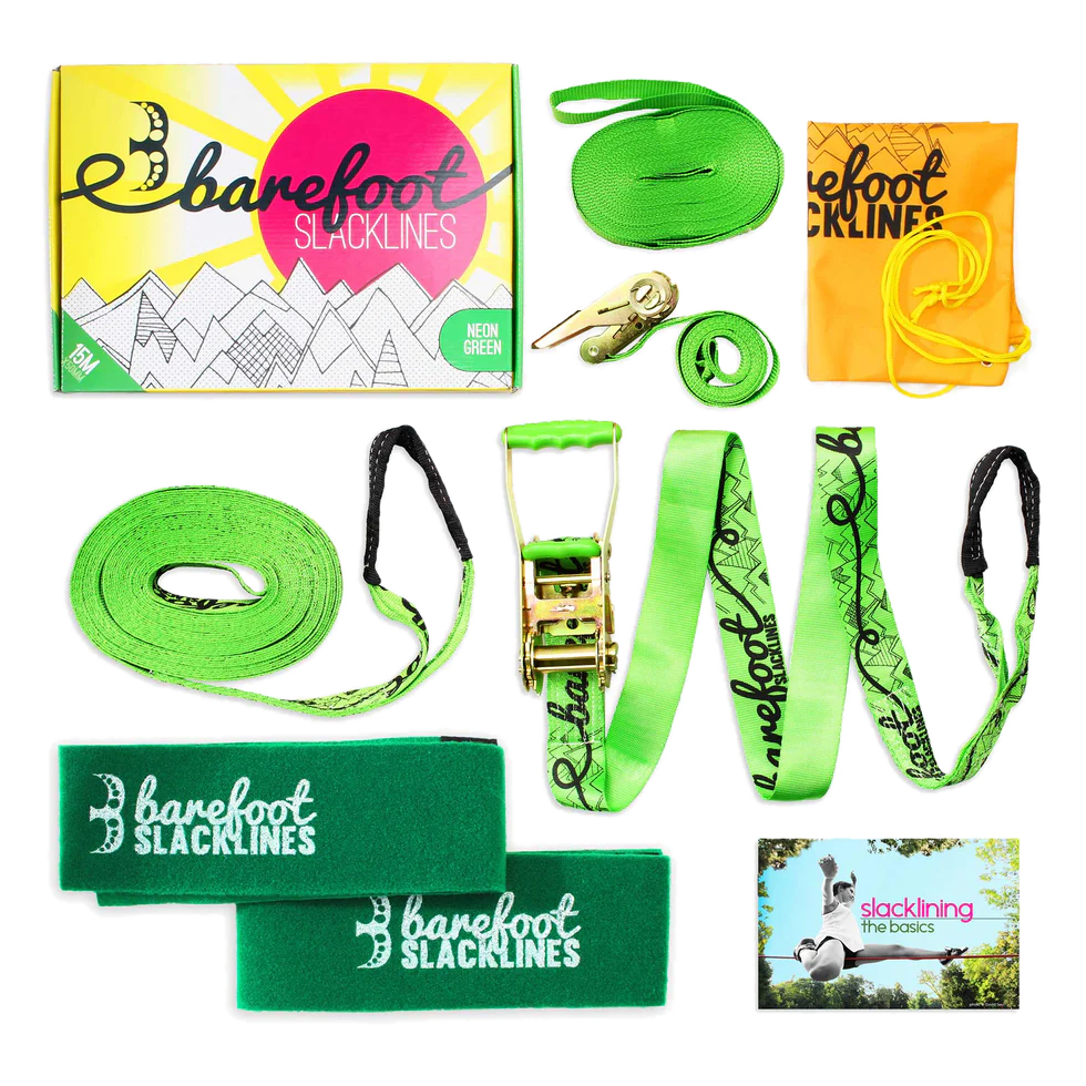 Whether it's your introduction to the slacking world, or just a much needed upgrade, this Barefoot kit has it all, including a 24-page, fully illustrated guide that takes the guesswork out of getting started. This booklet is your go-to resource for practical tips, including how to set up the line safely, and find your balance. Once you're comfortable, the guide even shows you how to pull off awesome tricks, making your slacklining journey fun from day one.