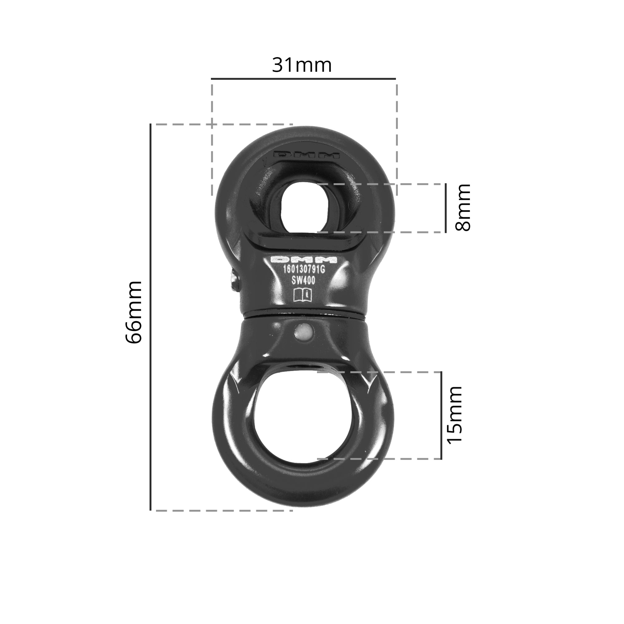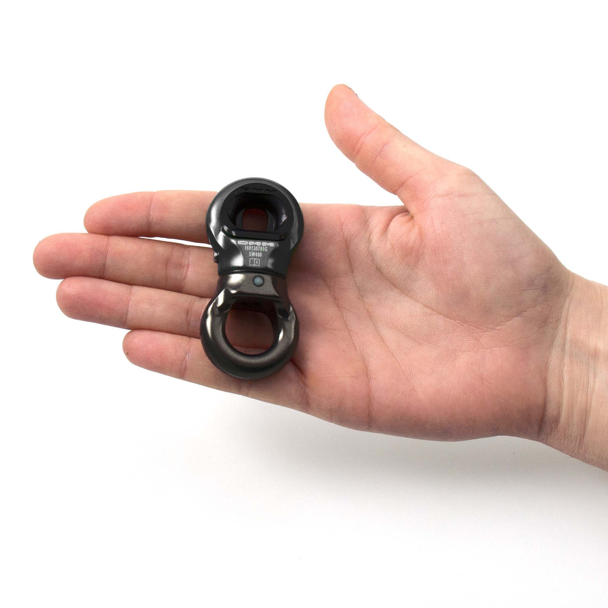 This mini swivel is constructed with a hot-forged, CNC machined aluminum alloy body and stainless steel axle. The aluminum body makes this swivel lightweight and compact, yet still robust. With a minimum breaking strength (MBS) of 26kN, this mini swivel is much stronger than many other swivels of its size. Additionally, it features a removable rubber insert that prevents the carabiner from slipping around.