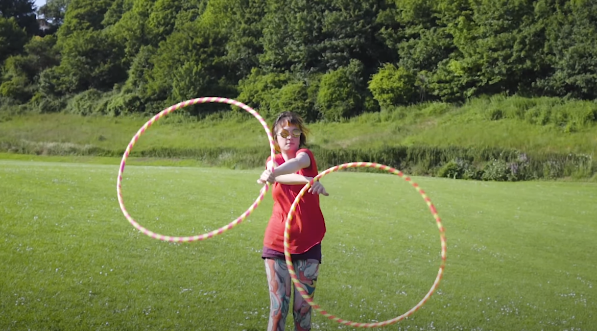 A standard 90cm one-piece travel hula hoop.
