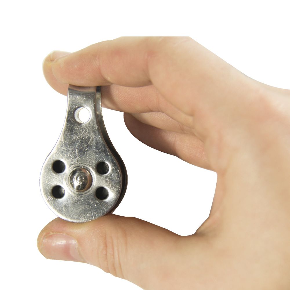 A small pulley that is ideal for paging your aerial circus apparatus.