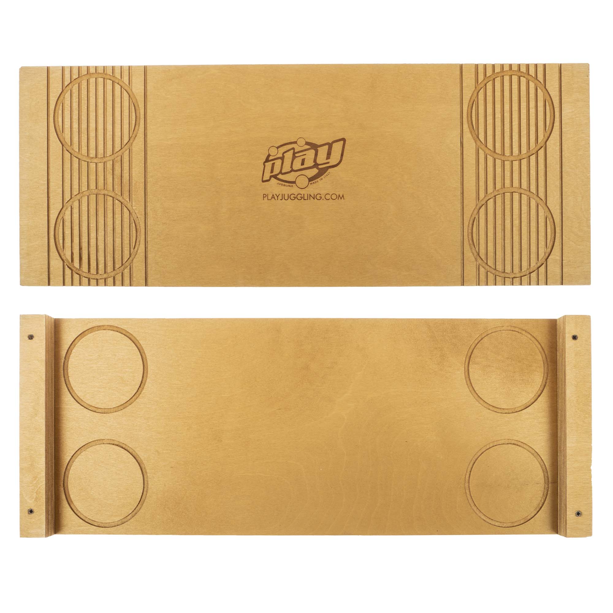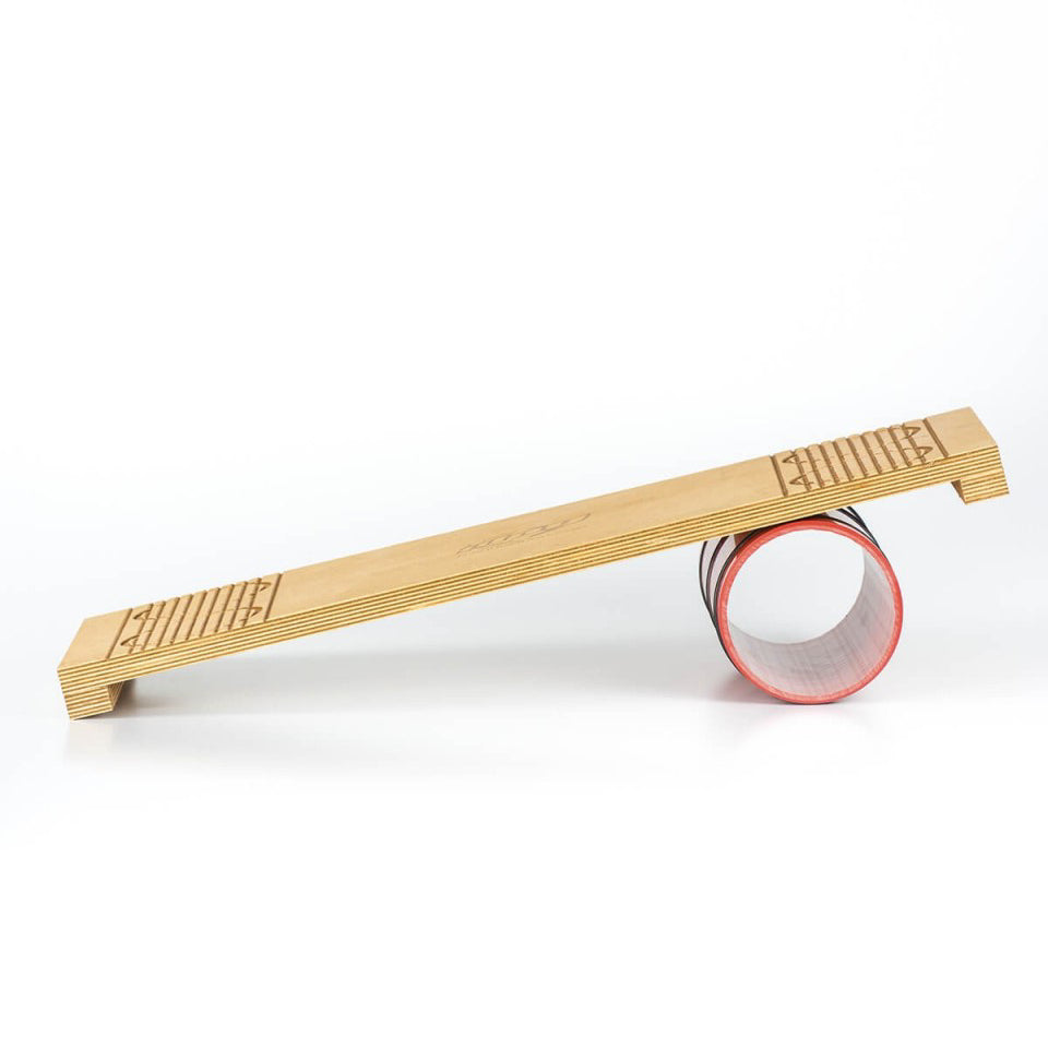 The multilayer plywood used to construct the board is robust and well made. Additionally, the board is equipped with four circular grooves in each corner, which enables the stacking of cylinders to create a multi-level Rolla Bolla, adding an extra layer of challenge and excitement to the activity.
