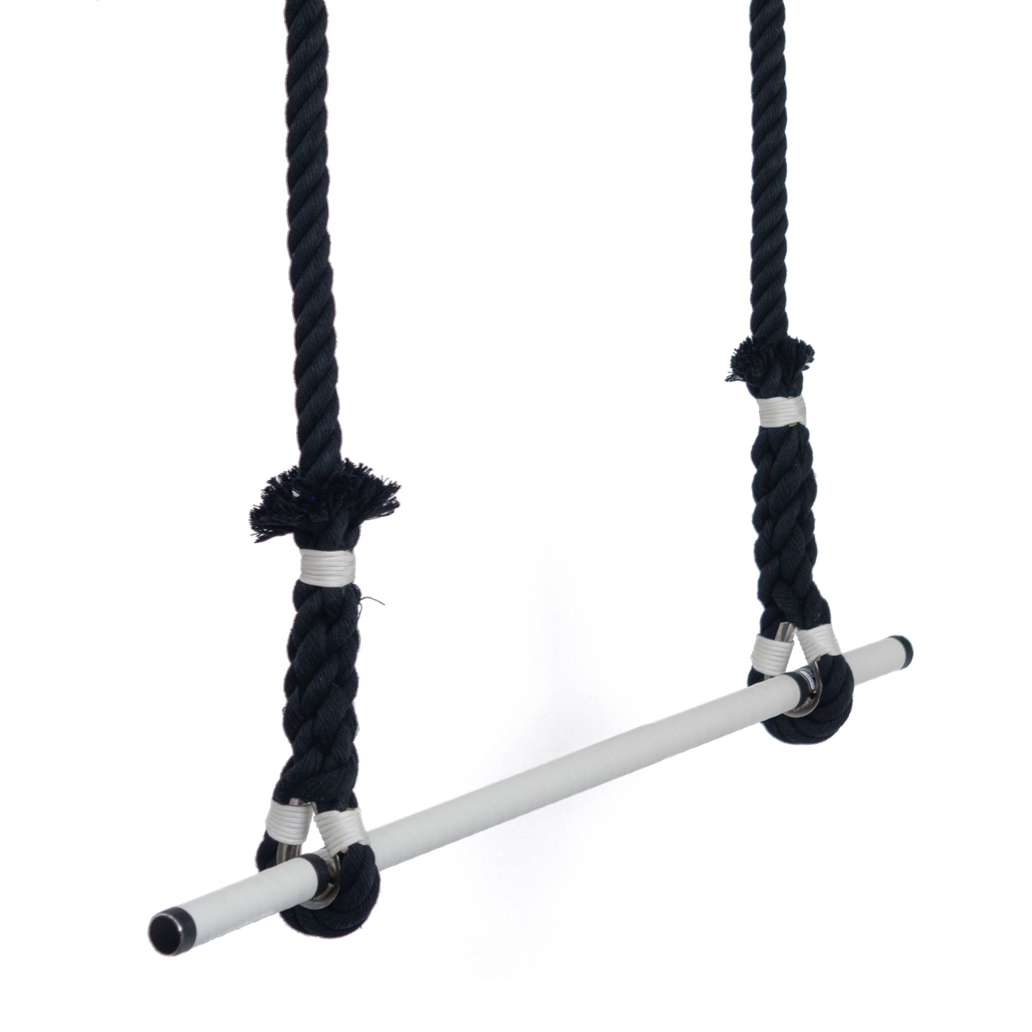 The Prodigy Aerial Dyna-Core trapeze is the perfect blend of the traditional trapeze style and modern functionality. This trapeze is designed to provide superior stability and security, thanks to its advanced Dyna-Core ropes that feature minimal stretch and zero bounce. The Dyna Core trapeze is available in two colours - black and white - allowing you to choose the one that best suits your personal style.
