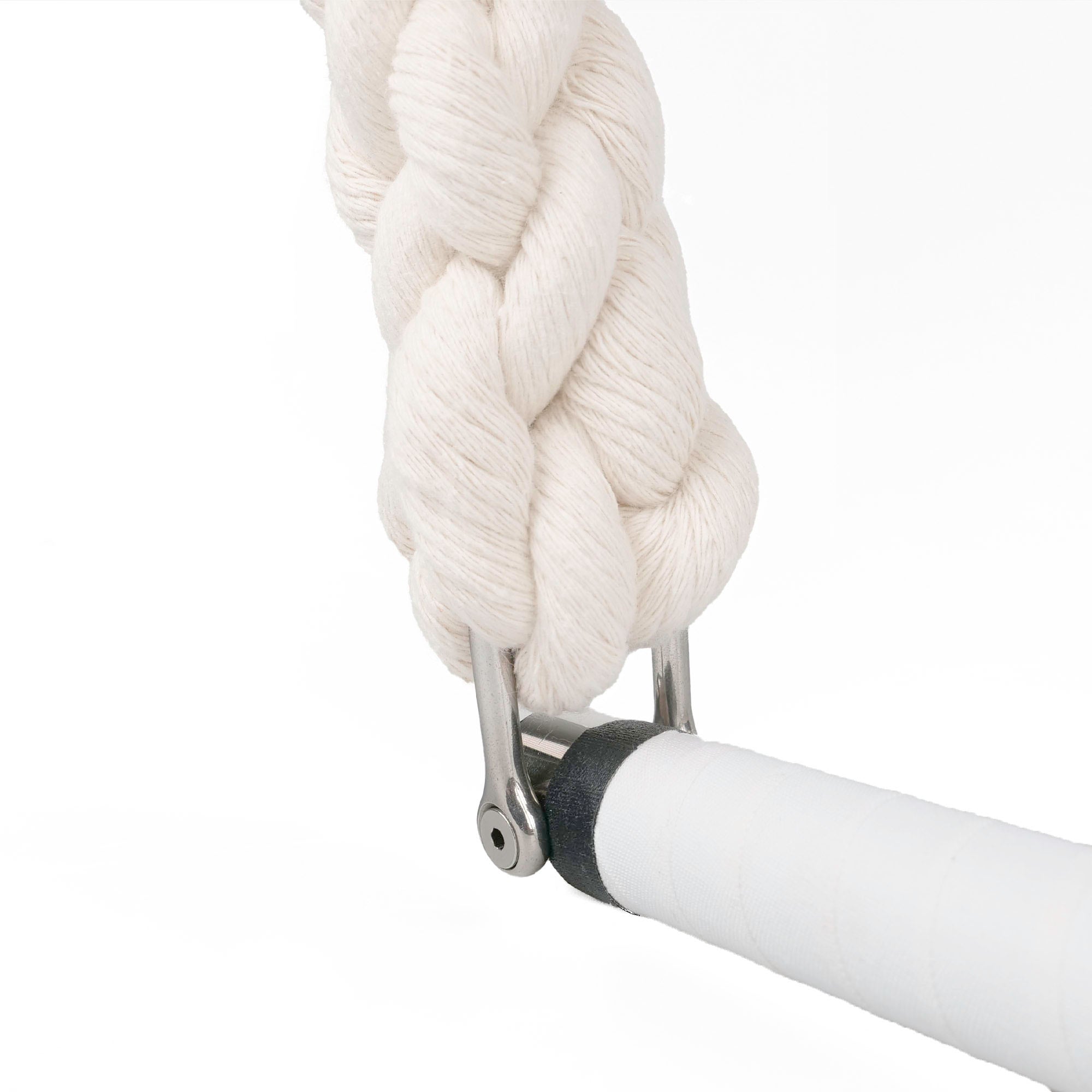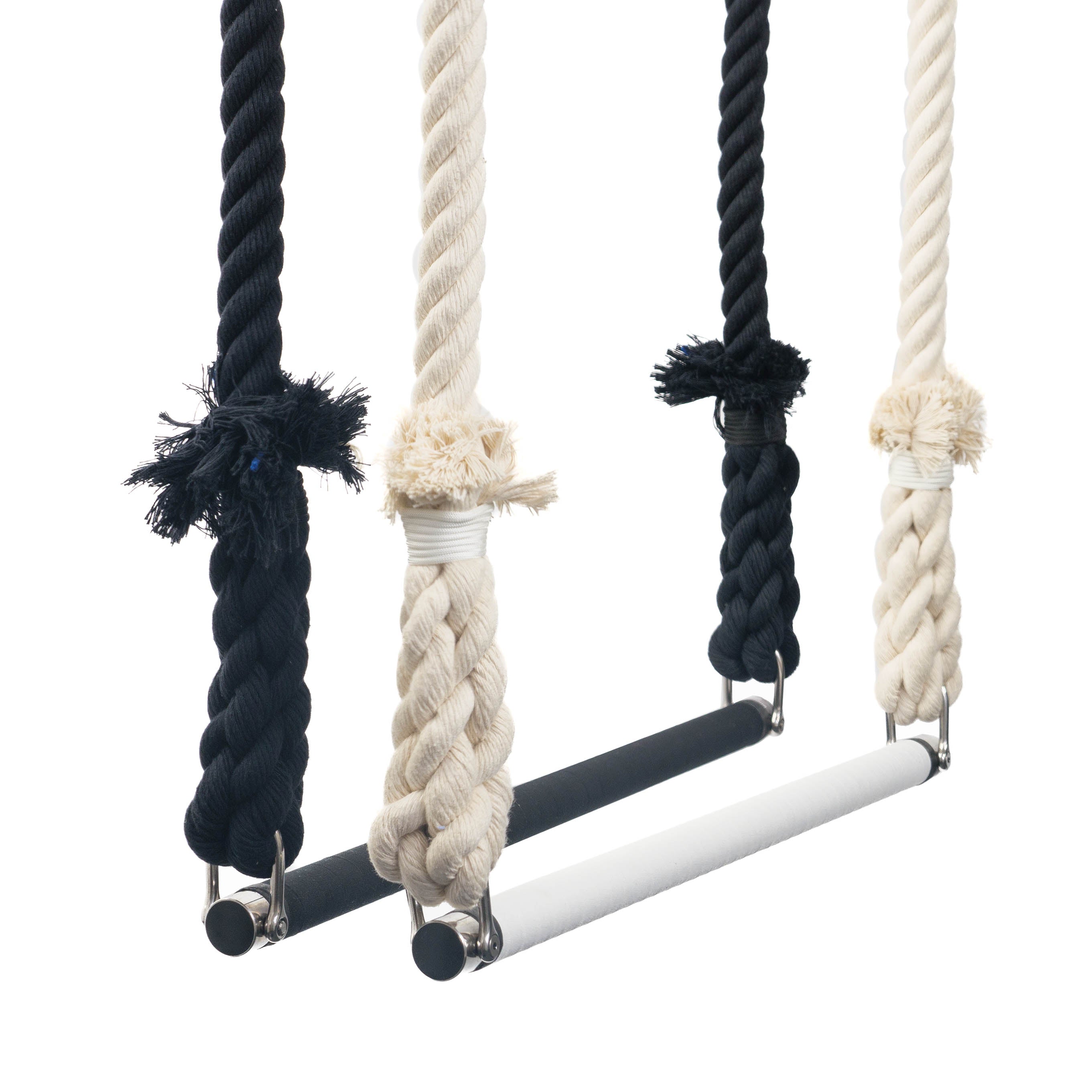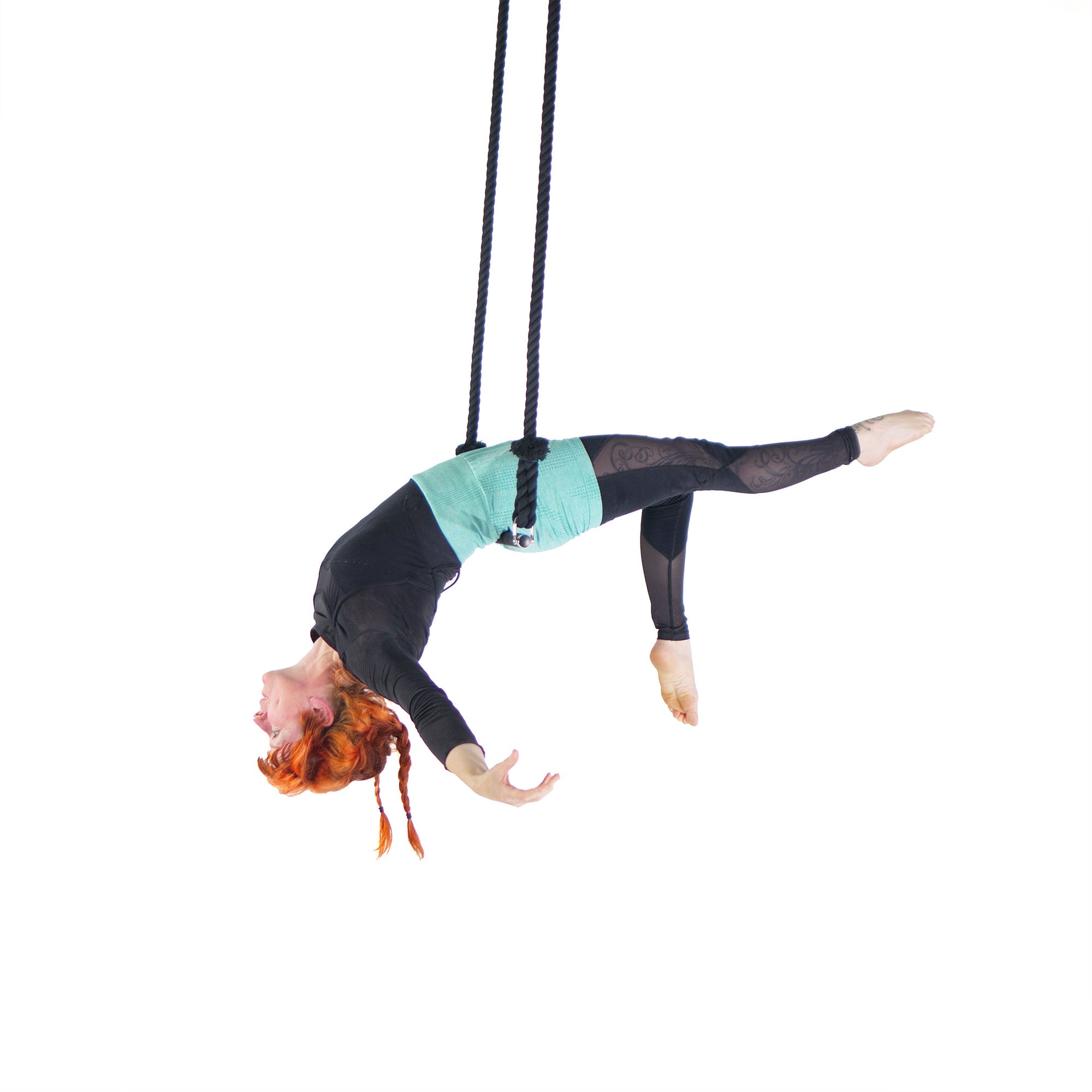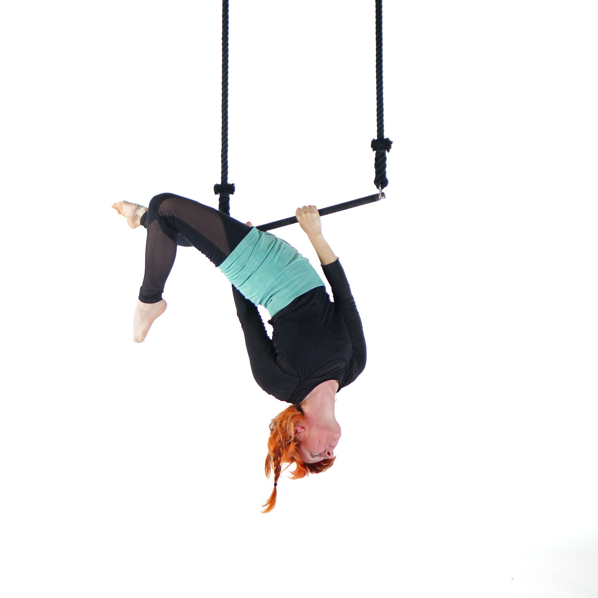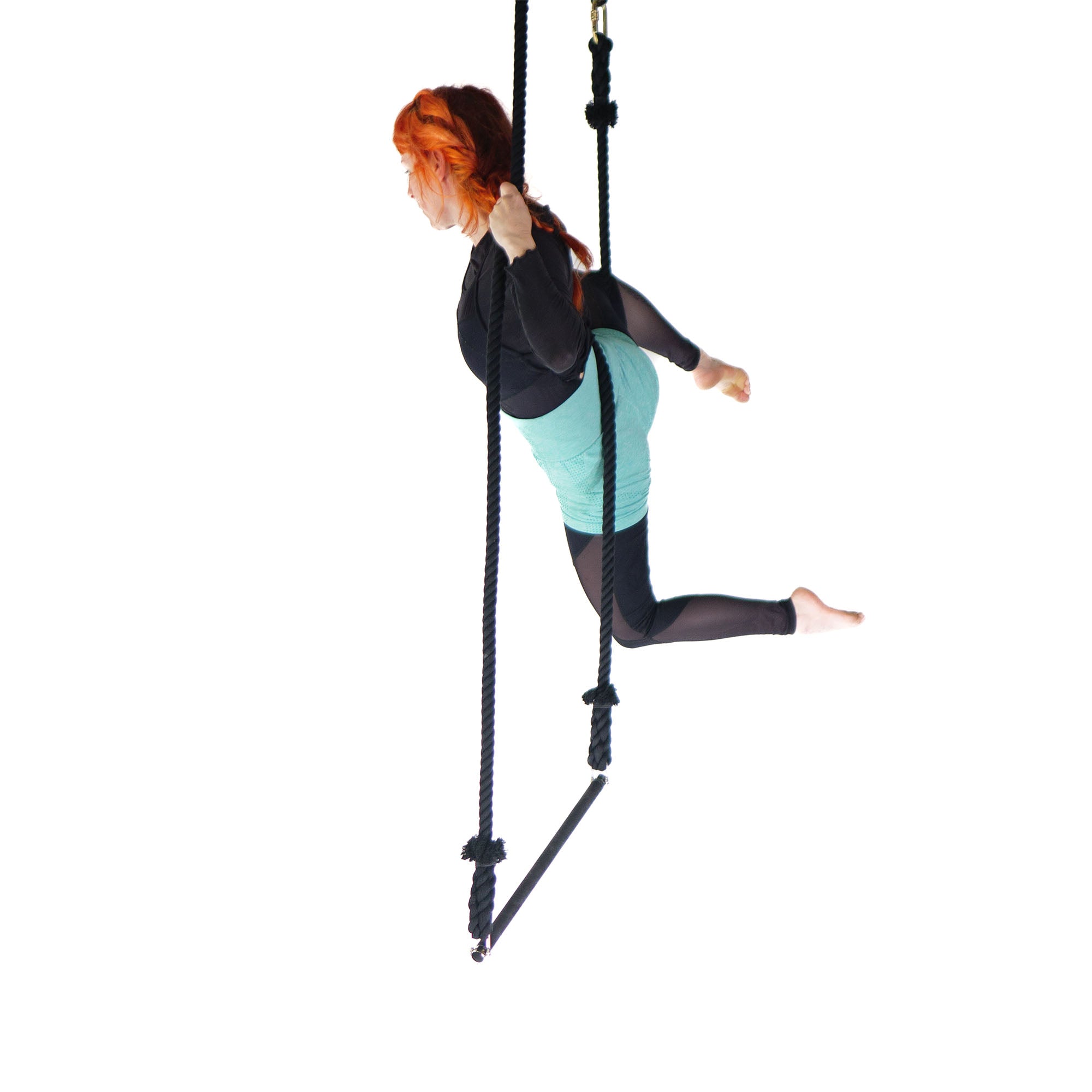 This trapeze from Prodigy Aerial combines the versatile shackle style with modern Dyna-Core ropes, which feature minimal stretch and no bounce.