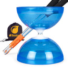 This set features a large (jumbo) fixed axle diabolo, aluminium hand sticks and a drawstring bag.